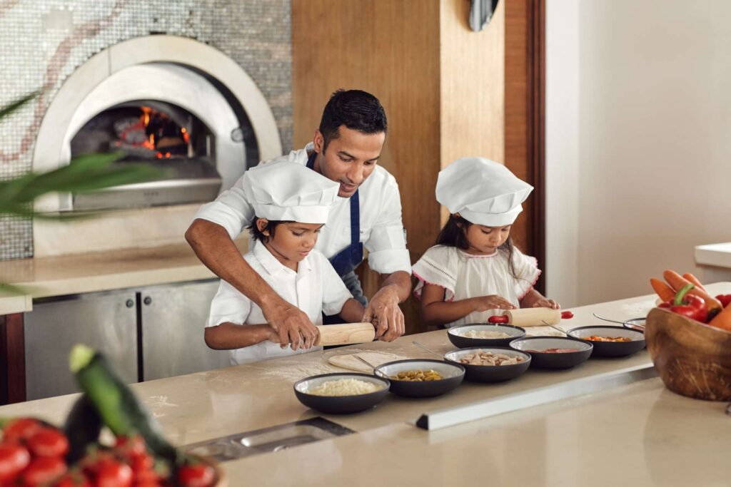 You will also be spoilt with culinary delights at Jumeirah Olhahali Island: start the day with a delicious breakfast at GLOW, enjoy a relaxing afternoon at the beach restaurant Shimmers and let yourself be enchanted by the award-winning Nikkei creations at Kayto in the evening. The Talise Spa, located above the water, is a true oasis of relaxation and offers panoramic treatment rooms and a wide range of rituals, massages and treatments. Your unforgettable stay is rounded off with amenities such as the KiDS Club, a personalised butler service and a stylish boutique on the beach.