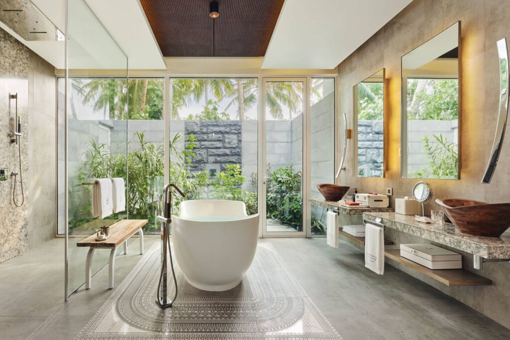 Beach villa with pool: Nestled in the gentle contours of white sandy beaches and lush tropical vegetation, your private beach villa awaits you. Step straight out of your villa onto the fine sand and enjoy the close proximity to the sea and the tropical atmosphere.