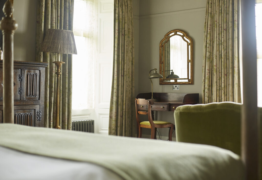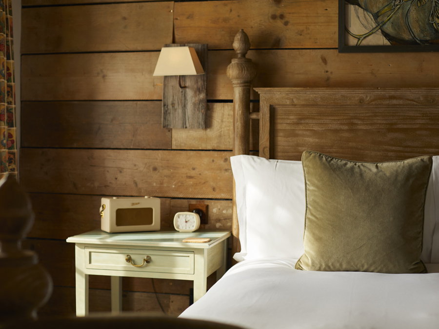 Der Charakter von The Pig at Combe ist eine meisterhafte Melange aus historischer Grandezza und unprätentiöser Gemütlichkeit. Man spürt die Jahrhunderte in den dicken Steinmauern und den knarrenden Dielen, doch gleichzeitig umfängt einen eine warme, fast familiäre Atmosphäre, die zum Verweilen einlädt. Dieser besondere Charme entsteht durch die liebevolle Restaurierung, die das authentische Erbe des Hauses bewahrt und es mit dem unverwechselbaren „Pig-Stil“ – einer Mischung aus rustikalem Chic, Vintage-Funden und modernen Akzenten – bereichert. Es ist ein Ort, an dem man sich sofort zu Hause fühlt, aber mit dem luxuriösen Gefühl, weit weg vom Alltag zu sein.